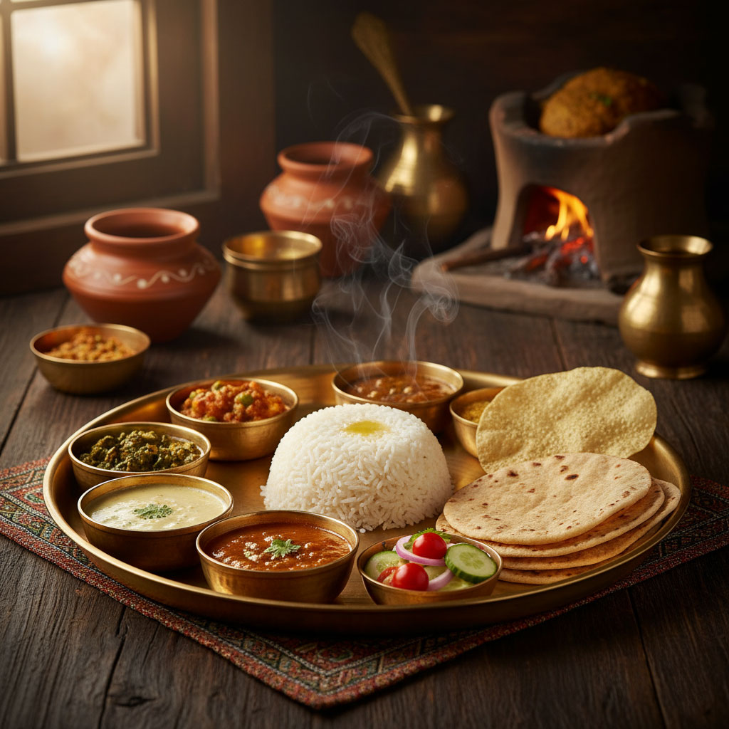 - Rice or Khichdi: Choose between a large serving of fluffy Bhaat (250 gm) for your afternoon thali or our wholesome Khichdi (250 gm) in the evening.